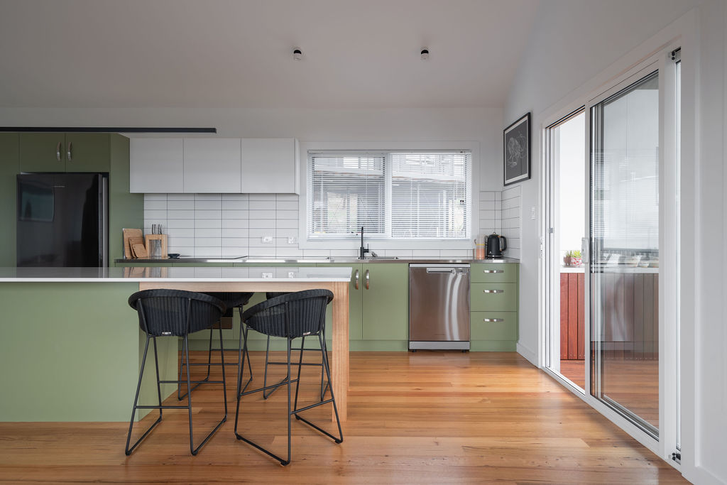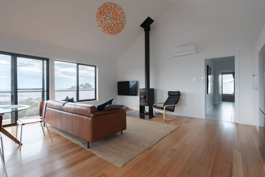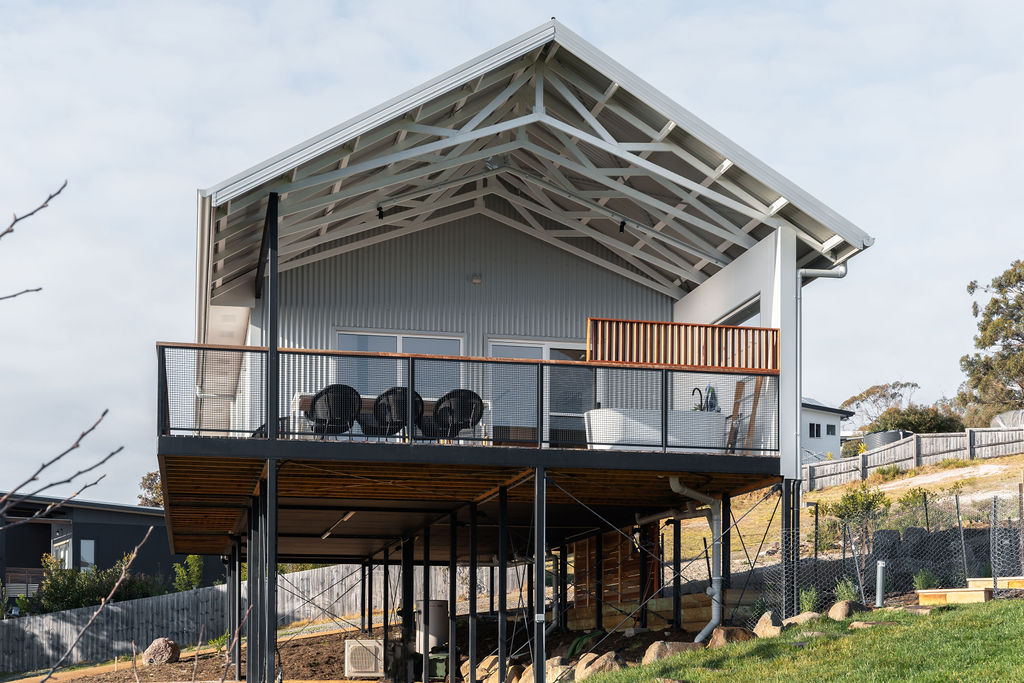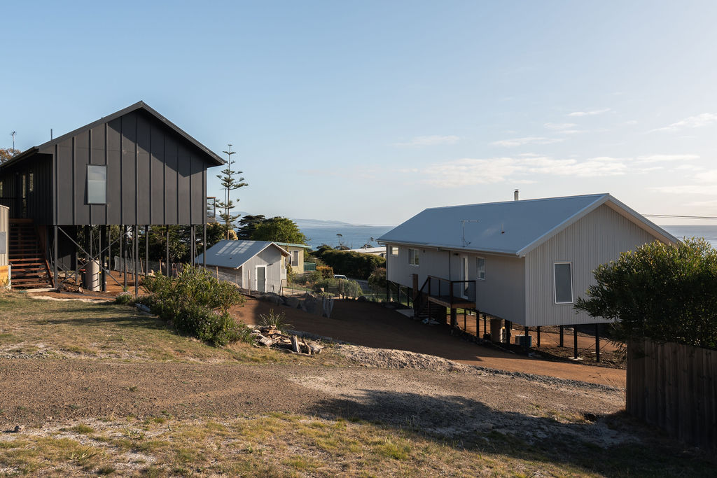 We undertook this Strata project for two separate couples, each showcasing their individual personalities. Each of these dwellings was carefully oriented and elevated above ground level to maximize privacy and views out towards the ocean and Diamond Island.