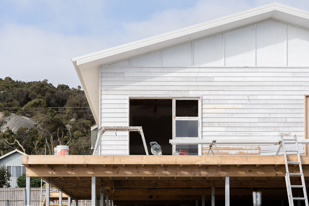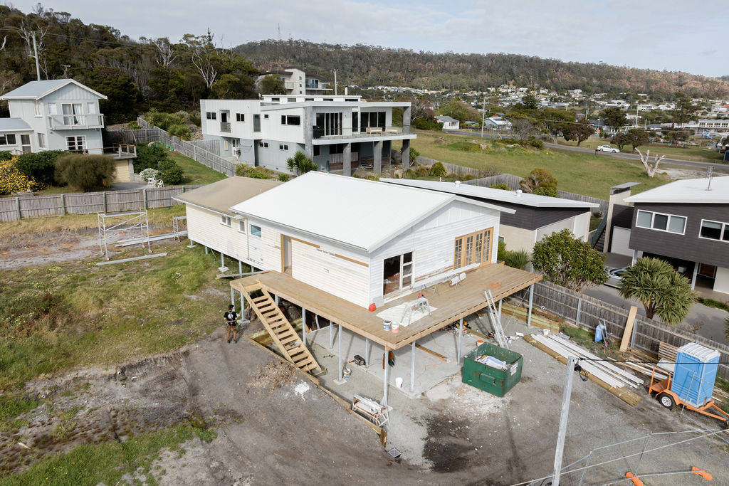 The original weatherboard home was relocated 300km north of Glaziers Bay where it was first built. By the time the house was cut into four for relocation purposes, it was very much in need of a full renovation. What was once a cramped, dimly lit farmhouse is now a light, bright holiday home.